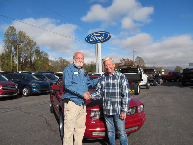 Raffle car winner Paul Hensley is presented the keys to his 2008 Mustang by Rick Mauck, Vice President of Blairsville Cruisers Car Club and is shown receiving congratulations from Cruisers Board Chairman Wayne Tanner for his winning and for his donation to the car club Children in need programs. Paul purchased his winning donation ticket , #00055, early in the season.